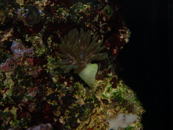 Wir haben diese Anemone im April bei uns eingesetzt. Sie ist aktuell ca. 8-9cm gross und macht keine Anstalten der Teilung. Somit schließen wir auf die große Variante. Unsere hat sich auf dem obersten Plateau niedergelassen, bekommt vollste Strömung und vollstes Licht ab und liebt es. Unsere Sex Shrimps hat Sie bisher nicht gewollt. Jedoch zum Leidwesen meiner Frau hat Sie heute unseren "Synchiropus sp. - Roter Mandarinfisch" vertilgt. Er ist wohl über die Anemone geschwommen und hat dabei Ihre Polypen berührt. Diese sind extrem klebrig. Je mehr er sich bewegt hat um so mehr wurde er eingeschlossen. Danach verschwand er Kopfüber in Ihrem Mund.