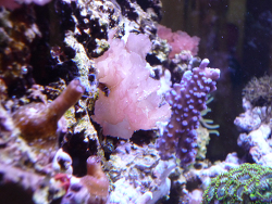 Bei uns war es auch auf dem LG aus Indonesien. Wir haben jedoch den Stein unbewusst gedreht eingesetzt, so dass der Bereich welcher früher dem Licht zugewandt war nun im Schatten lag. Aus diesem Schatten-bereich hat sich die lilafarbene Basis immer mehr Richtung Licht ausgebreitet. In 3 Monaten hat sich die Kolonie von ca. 2cm Durchmesser Größe auf einen Durchmesser von ca. 7cm vergrößert.
