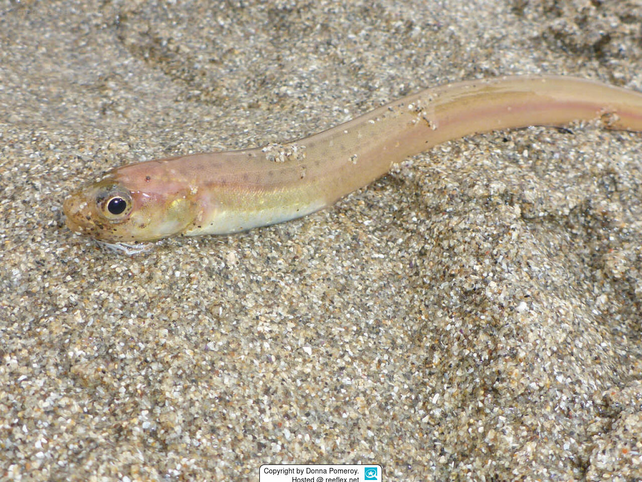 Uncommon species found on sandy bottom from the shore to 280 m. Adults often burrow tail-first in sand, live in mucus-lined holes, mud, eelgrass and rock rubble.