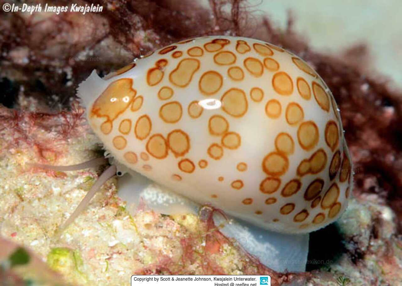 The round yellow to brown spots on the nearly spherical shell are unique to this species. Although it occasionally occurs on lagoon pinnacles in caves or rubble, Annepona mariae is most often seen nocturnally in seaward reef surge channel caves.