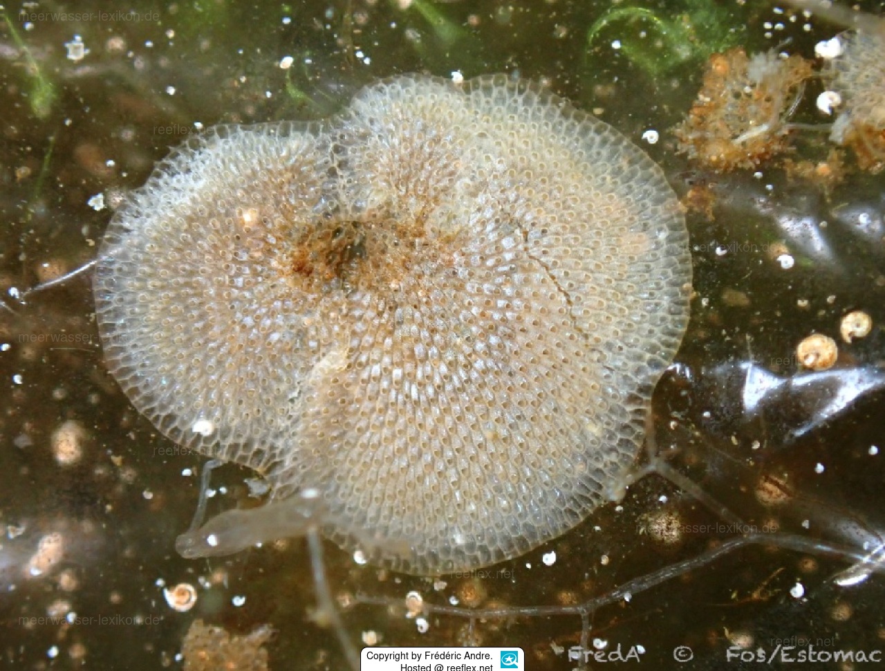 This bryozoan settles on seagrass blades, rocks, oysters, pilings, ship hulls, and other hard substrates