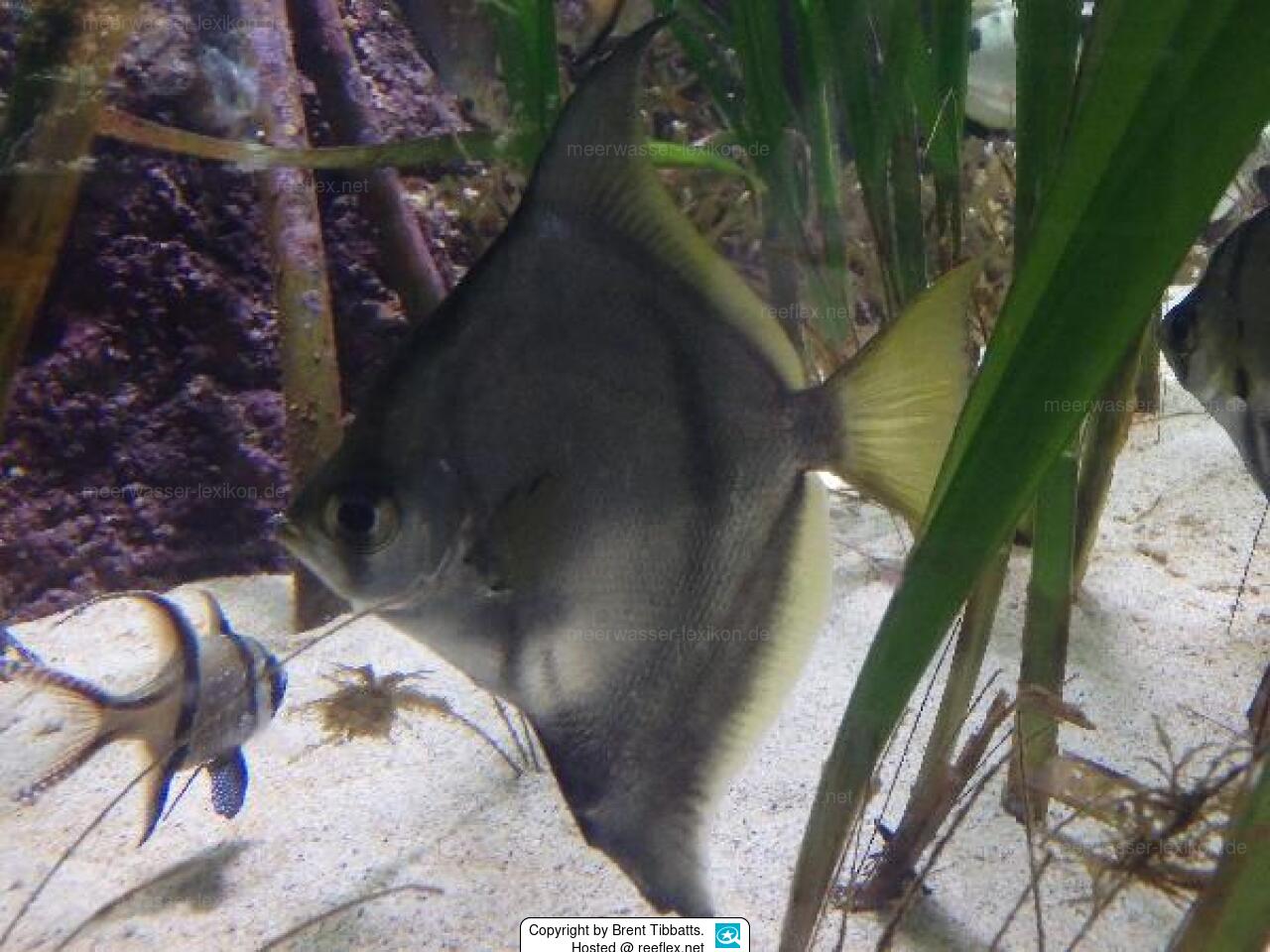 Das Seba-Flossenblatt hat eine sehr interessante Körperform. Oft fragen mich Besucher, ob da ein Skalar in meinem Meerwasserbecken schwimmt. Da muss ich immer lachen. Die Ähnlichkeit zu den Segelflossern aus dem Süßwasser ist jedoch in der Tat verblüffend. Allerdings fehlen den Flossenblättern die langen Bauchflossen. Farblich kann das Seba-Flossenblatt jedoch nicht mit dem Silberflossenblatt konkurieren. Der Silberglanz ist bei M. sebae nicht so deutlich ausgeprägt wie bei M. argenteus und auch der Gelbanteil in den Flossen fehlt bei M. sebae. Dieser ist bei M. sebae eher grünlich und viel schwächer. Ich habe nun beide Arten gehalten und ich kann jedem der sich für diese Fische interessiert wenn überhaupt nur das Seba-Flossenblatt empfehlen, da es deutlich unkomplizierter ist als M. argenteus. Dennoch wächst es ebenso rasant und frisst ebenso viel.